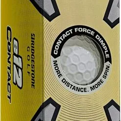 The new Bridgestone e12 CONTACT is straight distance you can see! The true game-changer is a new CONTACT Force dimple, which features a unique structure with a raised area in the center and an outer portion that slows horizontal rotation during flight. The raised area allows for 38% more contact with the clubface at impact than traditional dimples, yielding a much more efficient transfer of energy and improved core activation. The result is faster ball speed and straight distance with every club in the bag. Available in white, matte green, matte red, and matte yellow colors.