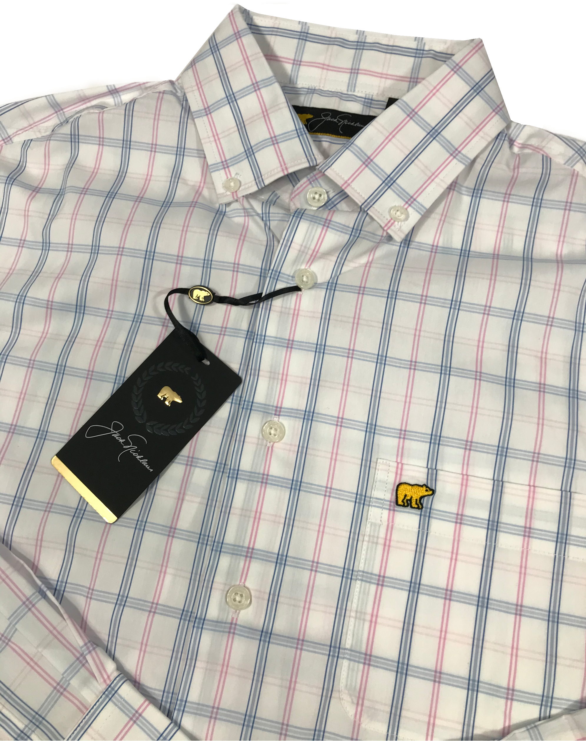 Some shirts just rise above the rest. This Jack Nicklaus long sleeve button-down falls into that category. Made for style, with a medium plaid pattern that touches multiple parts on the color wheel with a clean finish, it’s built for long days and nights, too. It’s crafted with performance stretch to help you maintain maximum range of motion off the golf course – and in the office, because this is the perfect addition to your work wardrobe. It’s finished with a left chest pocket with a golden bear logo embroidered on it.