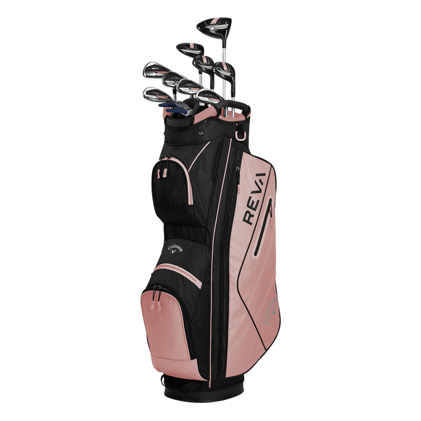 “The new REVA 11-Piece Complete Set from Callaway, the #1 brand for womenu2019s equipment, is designed with premium performance in mind. This complete offering is engineered for women of all skill levels who want to increase their distance, hit great shots, and enjoy the game more than ever before. This set includes: Driver, 3 Wood, 5 & 6 Hybrids, 7 through 9 Irons, Pitching and Sand Wedge, Putter, Cart Bag, and (5) Headcovers.”