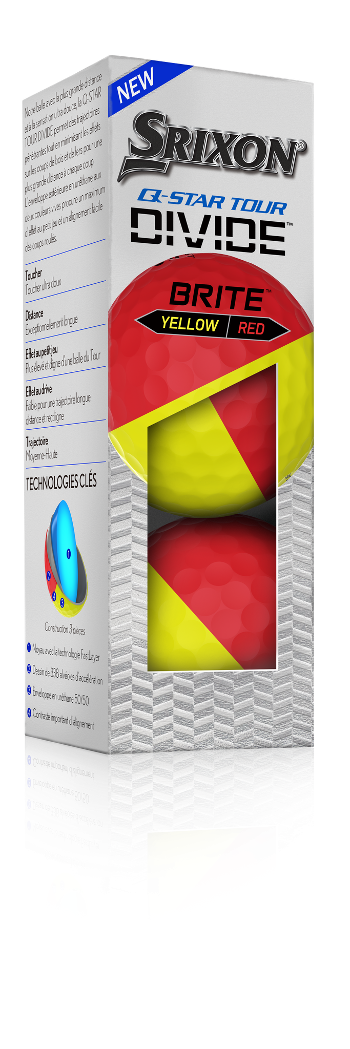 The new Q-STAR TOUR DIVIDE is a performer, through and through. Unlike painted golf balls, DIVIDE’s entire thermoplastic urethane cover is infused with bright pigments, so the color won’t scratch or tear. Plus, that premium urethane adds spin for plenty of control around the greens.