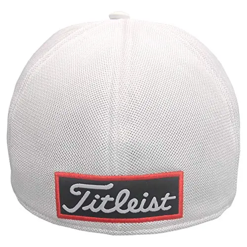 Titleist Tour Sports Mesh fitted caps feature a performance front panel with micro mesh back, premium breathable material for ultimate comfort, antimicrobial to reduce odor, moisture-wicking sweatband, and a standard curve.