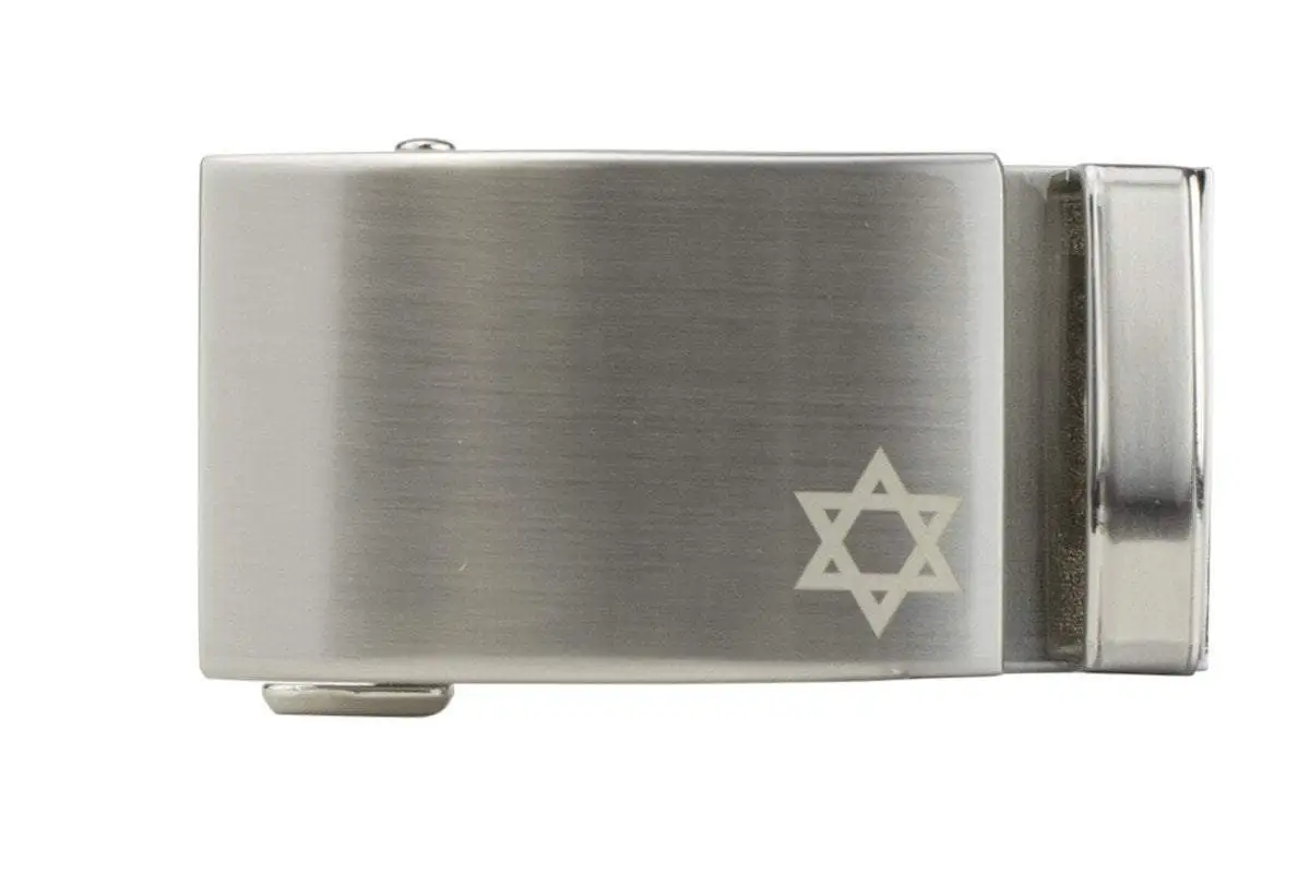 This Star of David buckleĀ makes for a greatĀ formal or casual wear. The buckleĀ provides a reminder to yourself and to your friends the strength of your faith. Makes a great gift. The brushed nickel finish buckleĀ is contrasted with an etched Star of David. Ā