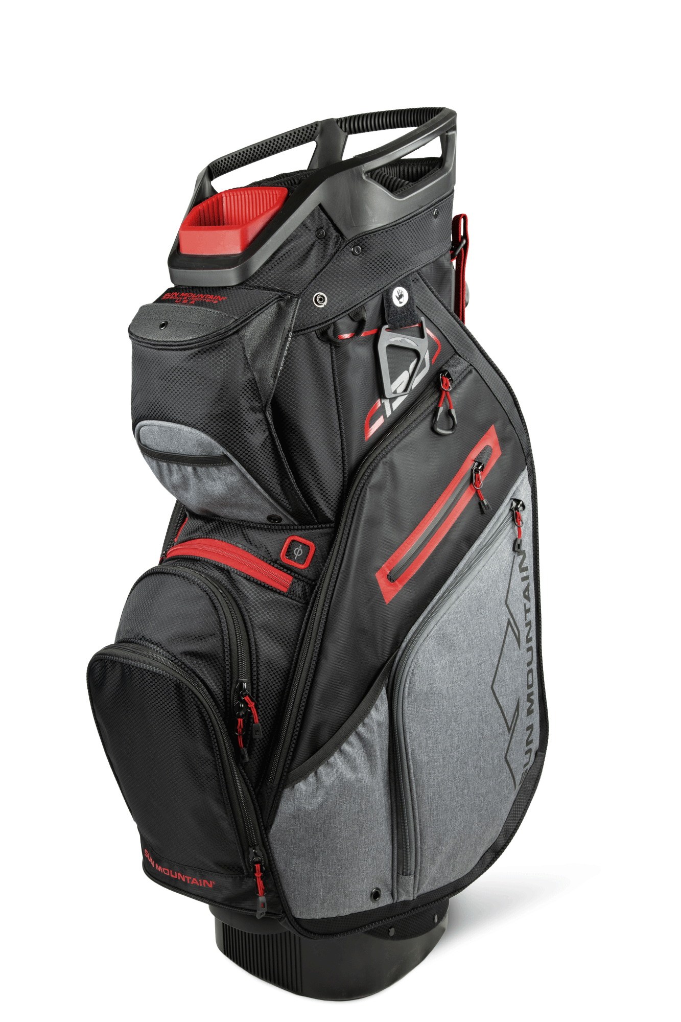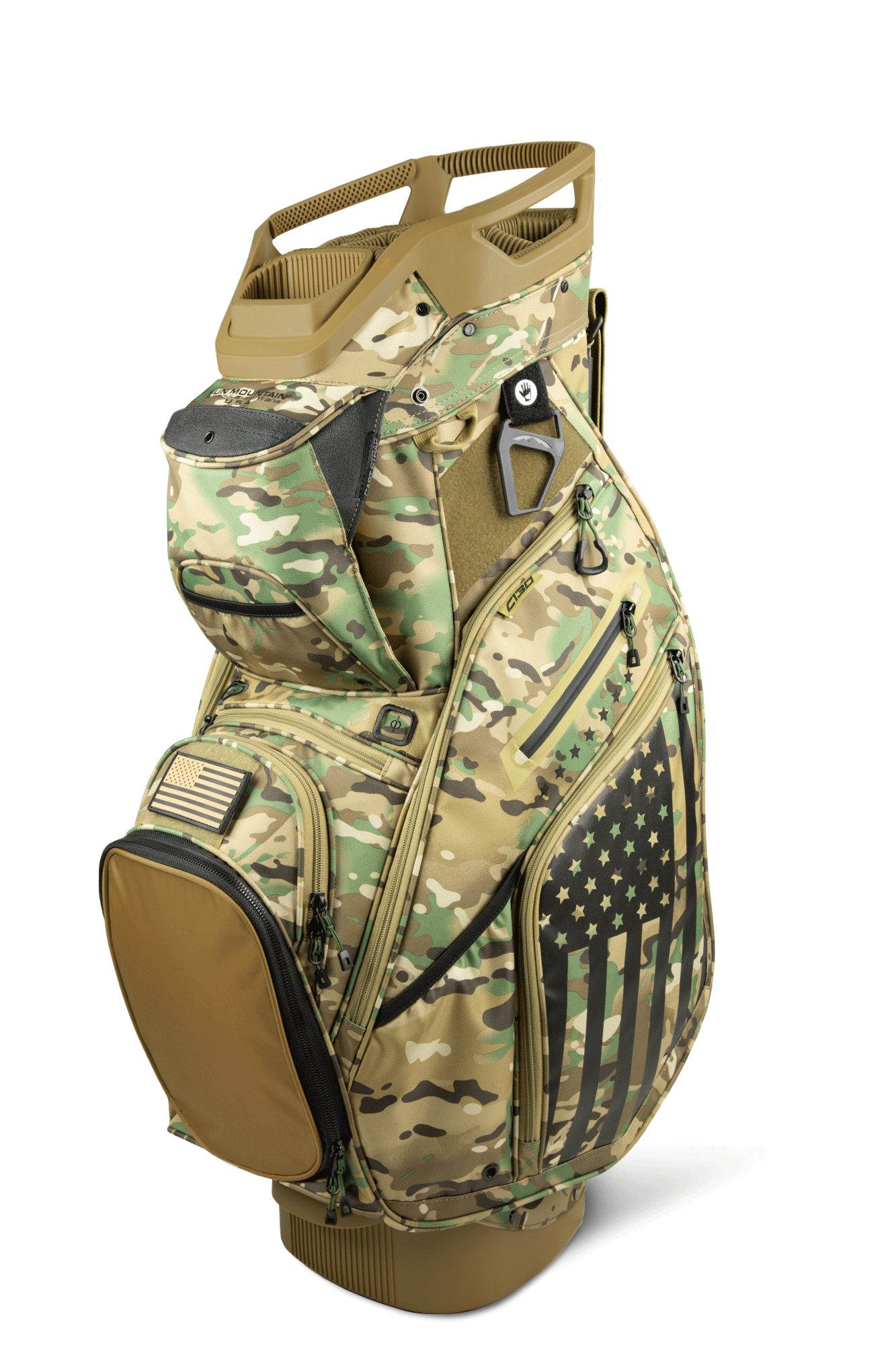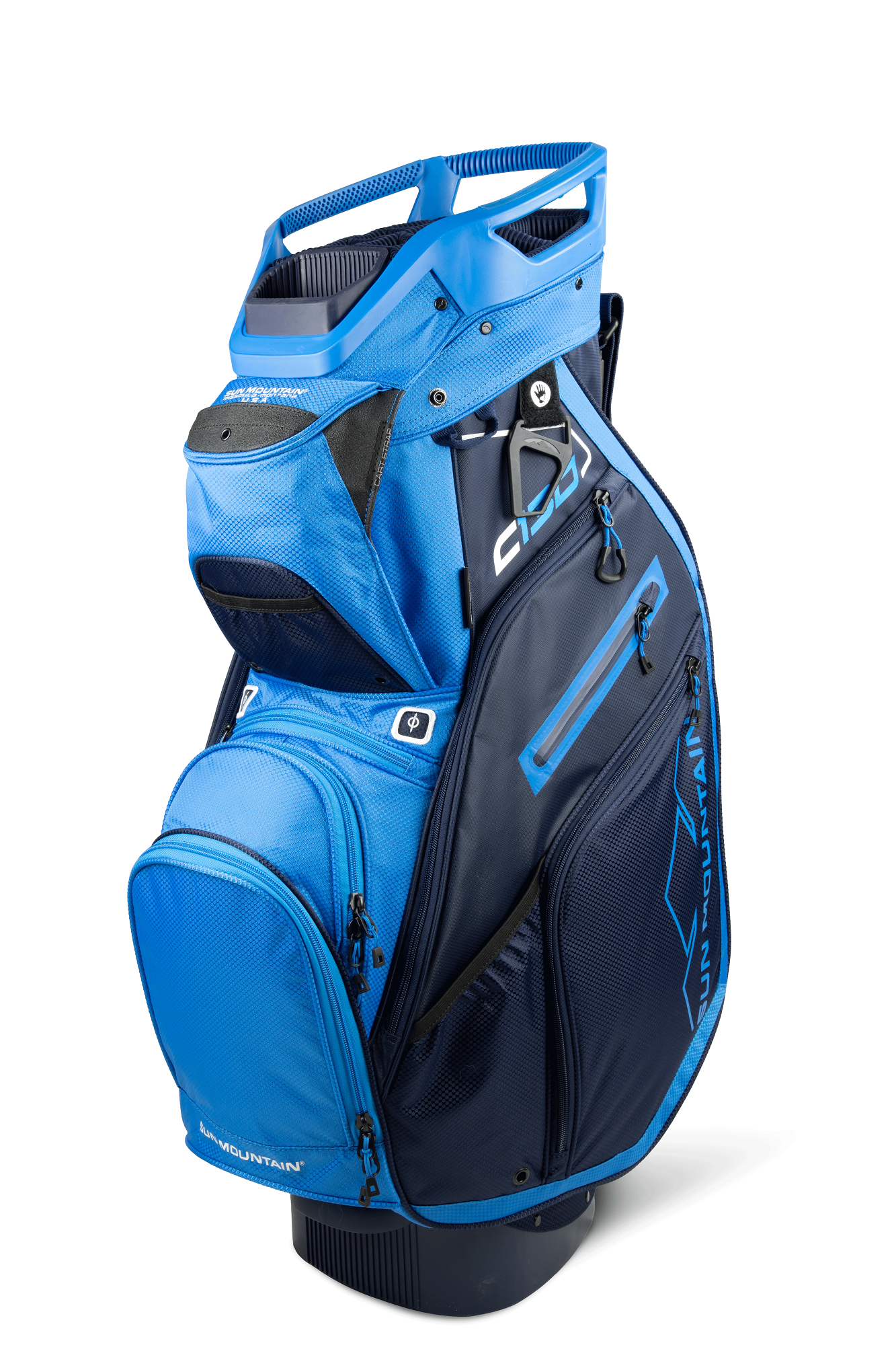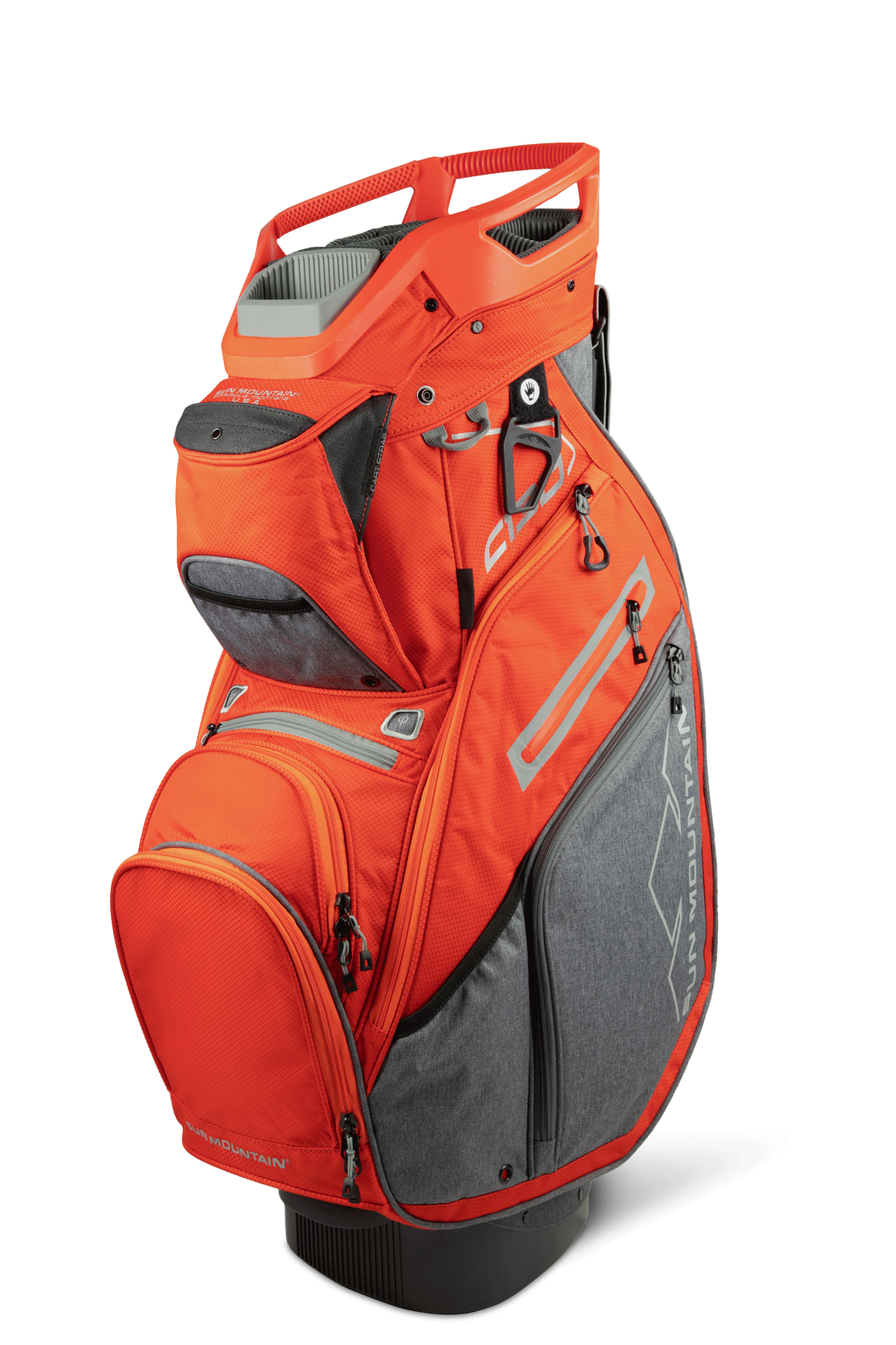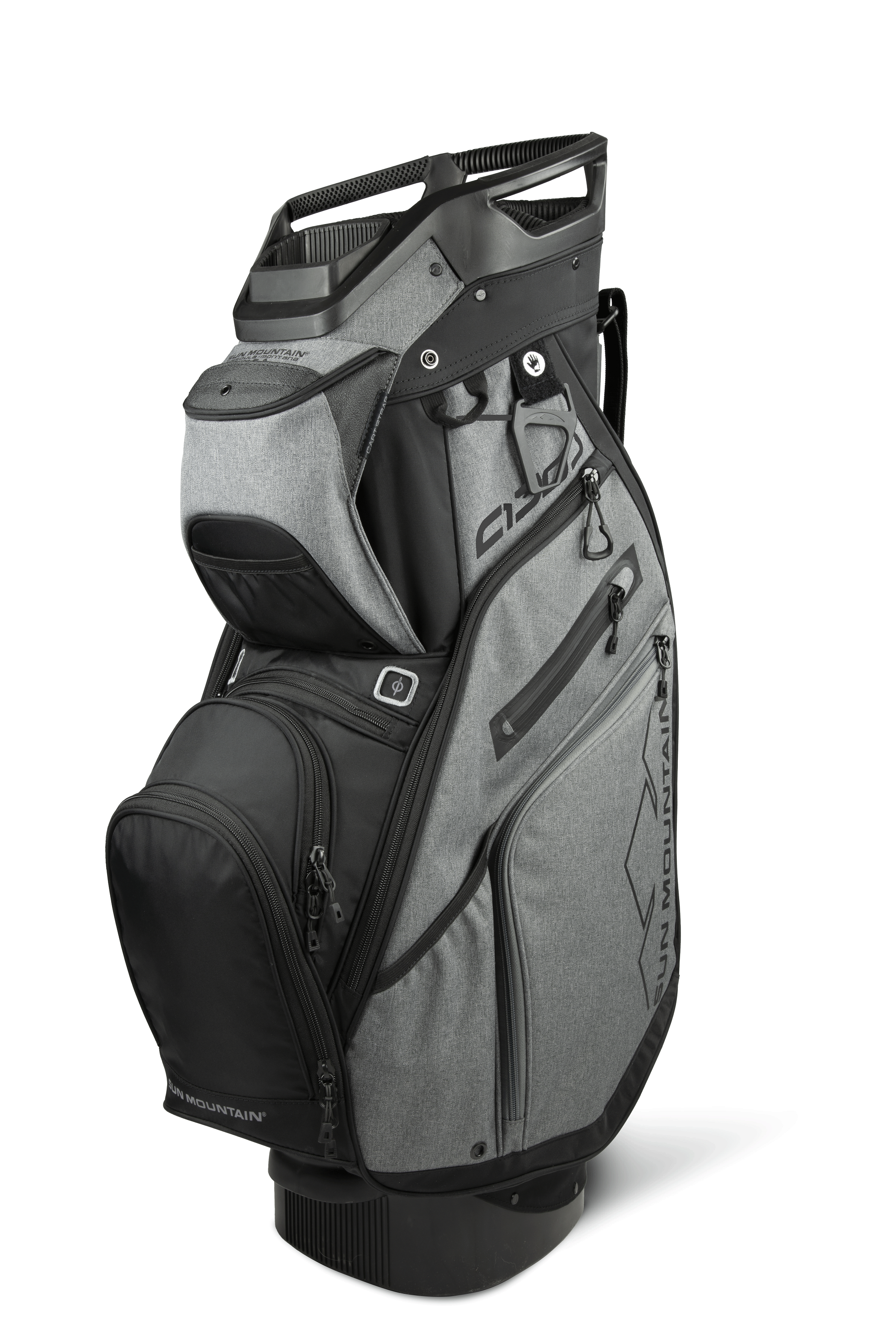 The C-130, our best-selling cart bag, was created to work optimally on a cart. All of the features are designed with cart use in mind, starting with the reverse orientation top with three utility handles, cart bumpers, the Smart Strap System and a convenient, roomy, velour-lined rangefinder pocket with a magnetic closure. In addition, all pockets are forward-facing and accessible when the bag is on a cart.