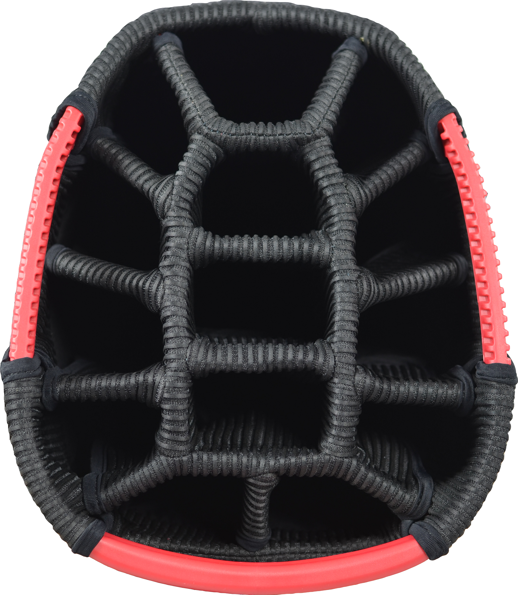 - Full-length club dividers organize clubs and prevent the migration of club shafts.