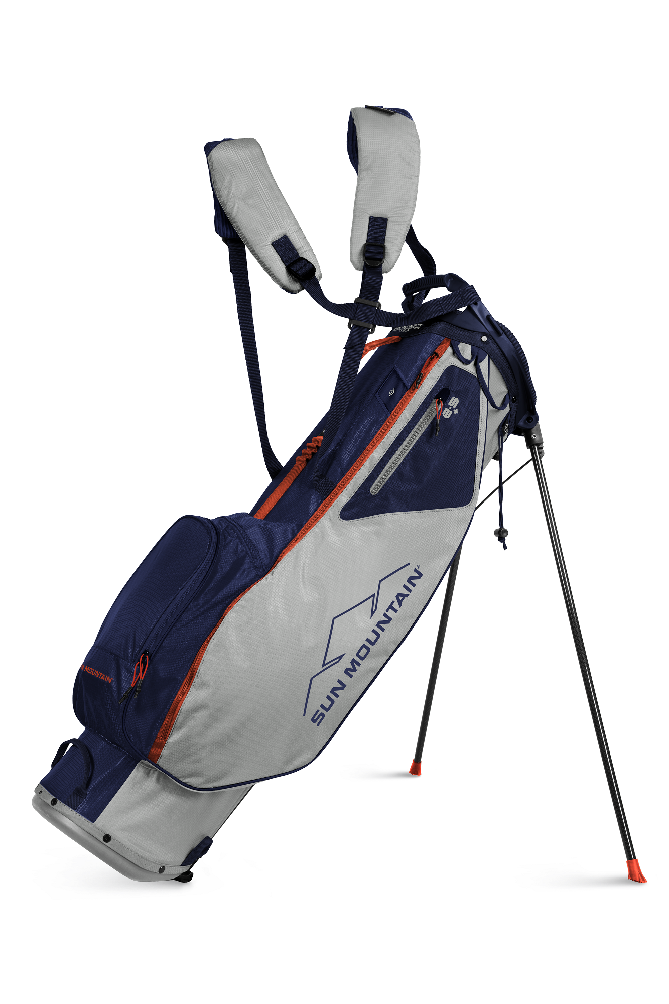 Designed for the avid walking golfer, 2.5+ redefines the features that can be offered in an ultralight golf bag. It has contoured, high-density foam shoulder straps for maximum carry comfort, a roomy, 9.0” top and six pockets including a beverage pouch. All of this and it still weighs under three pounds.