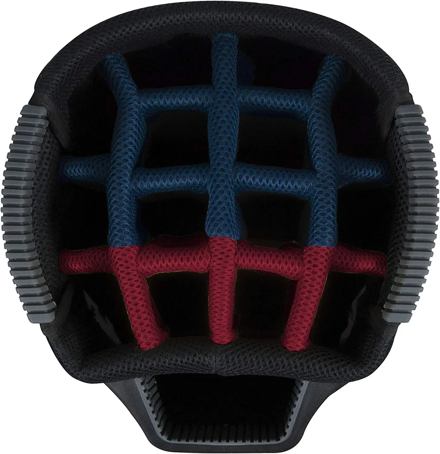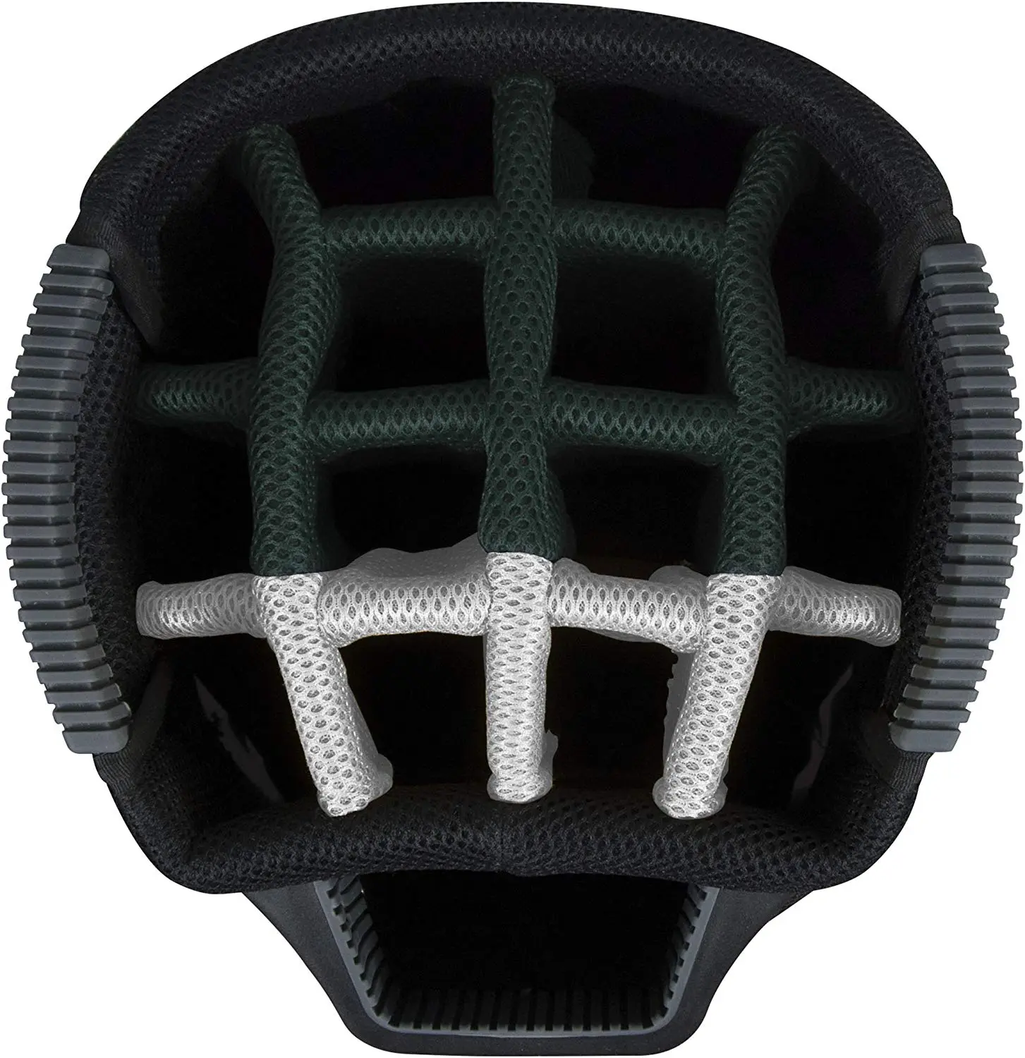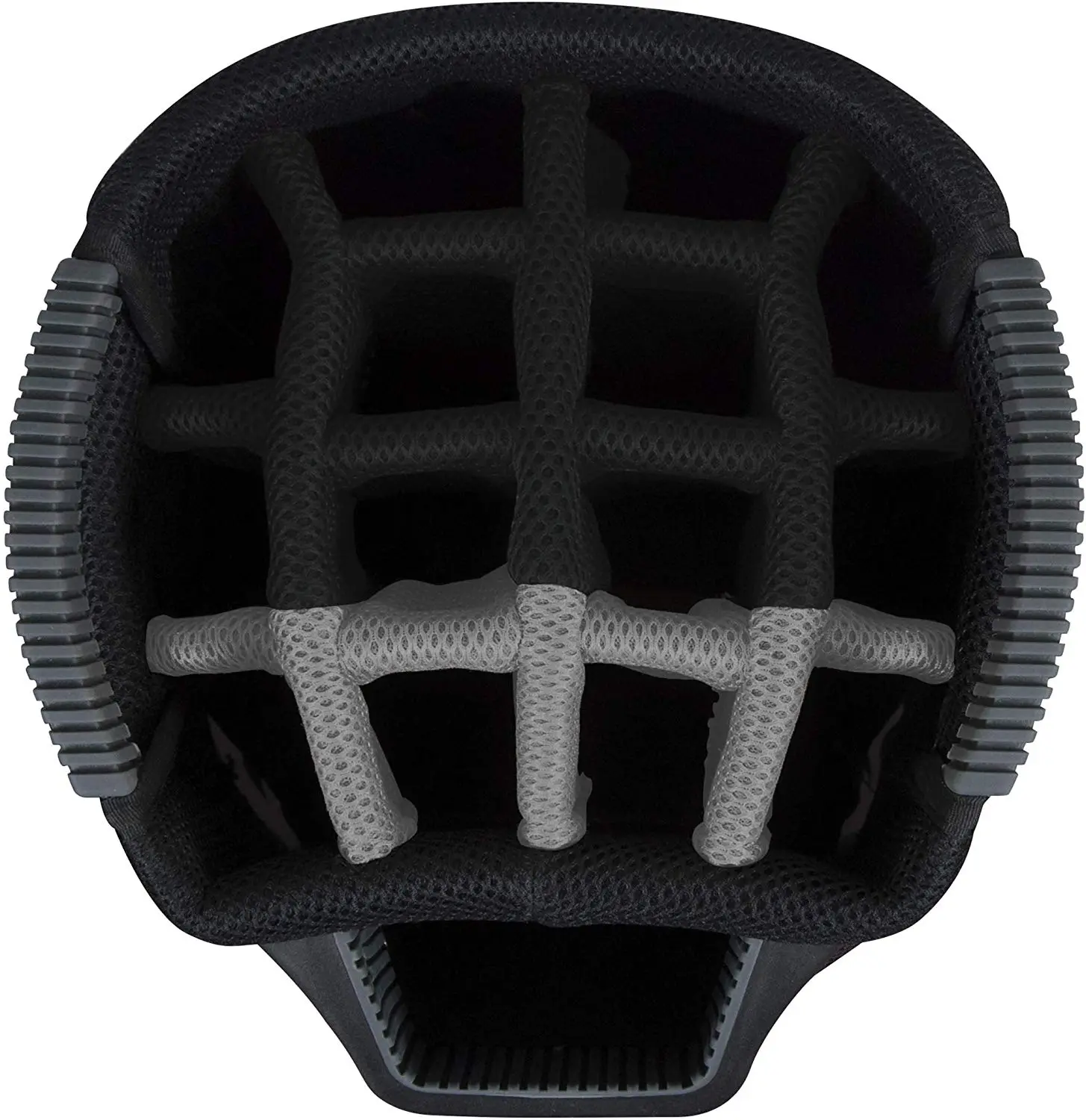 - 14-Way organizer top with front putter well, ultra-lightweight nylon construction, molded rubber handles, rounded pocket Openings allow easier access to pocket contents